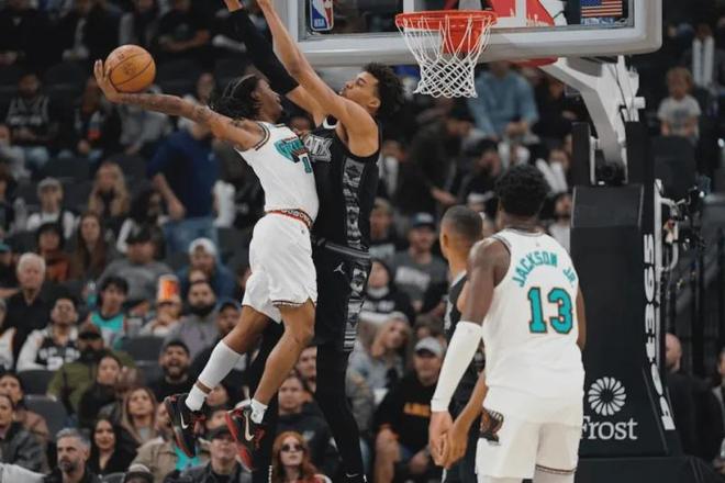 中距离出手55次命中21球命中率38.2%也属于不合格水平,唯一值得夸奖的投射数据就是罚球65次命中62球命中率高达95.4%,在NBA一般认为只要罚球好的球员投射就有大概率练出来,但莫兰特在投射方面始终进步不大,在新赛季开赛阶段更是化身为寒冰射手。