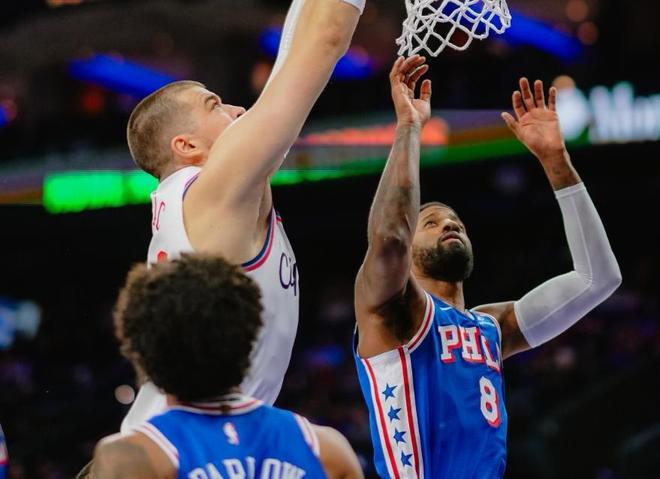 本场比赛,双方在首发阵容上面,快船这边派出的是,哈登,祖巴茨,科林斯,邓恩,桑德斯。76人这边派出的是,马克西,埃奇库姆,巴洛,德拉蒙德和保罗乔治。乔治迎来他本赛季的首秀。首节比赛开始,76人率先拿到球权,乔治漂移三分球一箭穿心,打进本场比赛首个进球,祖巴茨飞身补扣为快船开张,哈登高速突破,三大步上篮擦板命中,邓恩底角三分球直接开花,祖巴茨老大爷勾手稳稳命中,哈登的追身三分球正入网心,科林斯横冲直撞冲击篮下,一个2+1强势打成,首节比赛,快船整体进攻更胜一筹,很快就取得了10分左右领先优势。